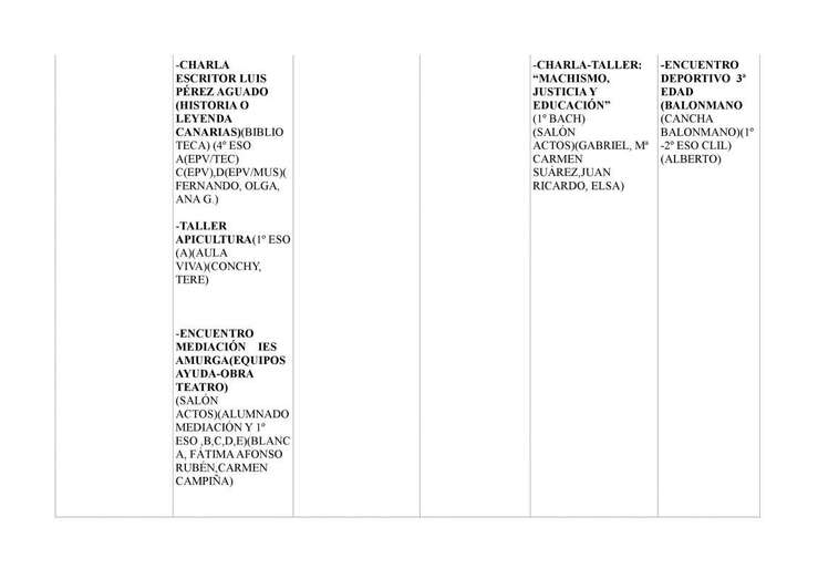 Los talleres también abarcararán temas diversos como apicultura, RCP, bailes urbanos y el denominado Salvemos el mar. Por ultimo se celebrará un encuentro con los alumnos del instituto de Guía dentro del proyecto del Huerto Escolar.