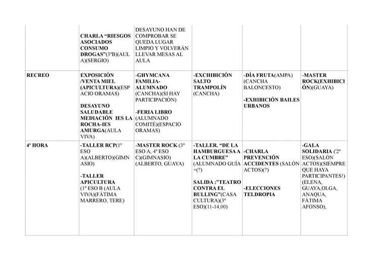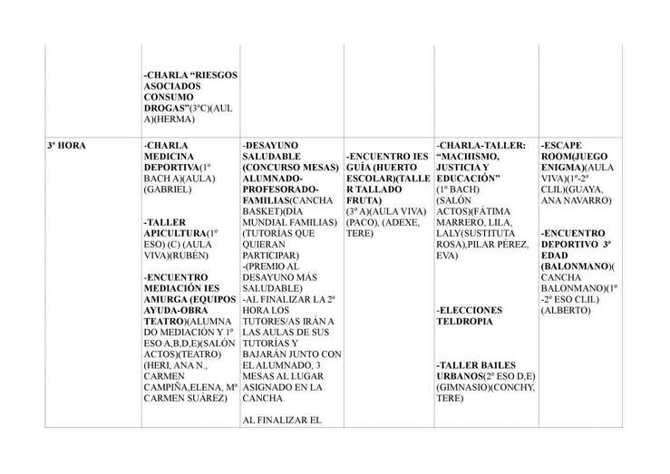 Durante la semana habrá talleres, charlas, encuentro con el IES de Guía y muchas más actividades organizadas por los distintos Proyectos y Redes del centro como colofón a las desarrolladas durante el año. Estos son el de Solidaridad, Huerto Escolar- Aula Viva, Salud, Igualdad , Familias, Mediación, Sostenibilidad , Paz en Construcción, Europia y Programa AICLE, han informado desde este IES: