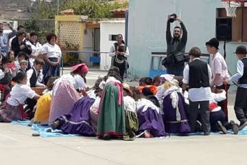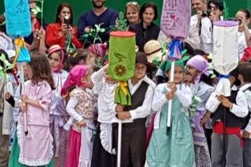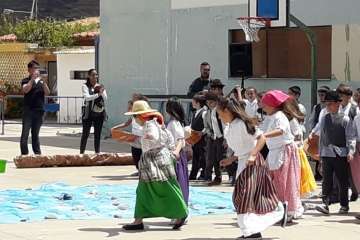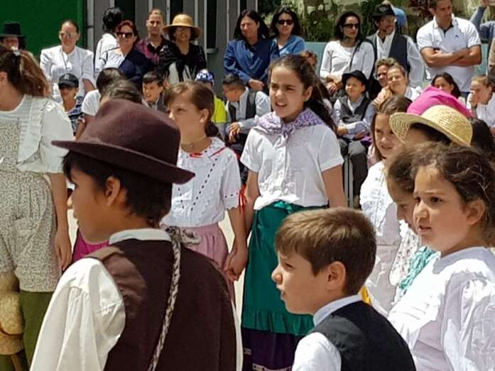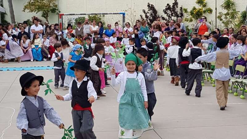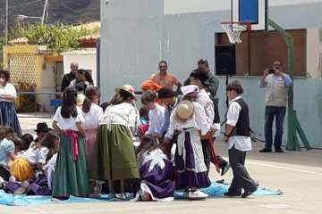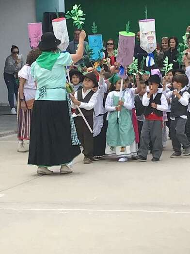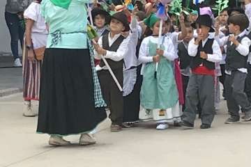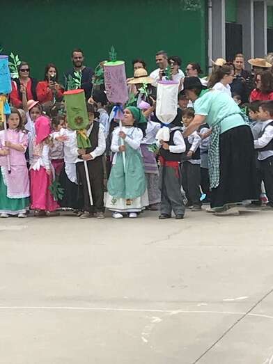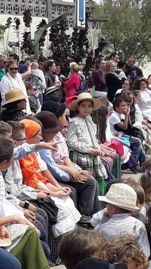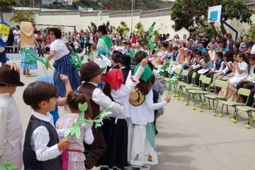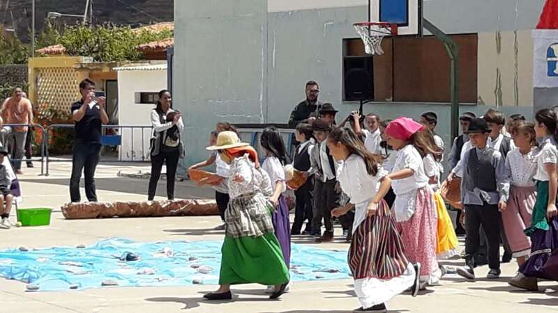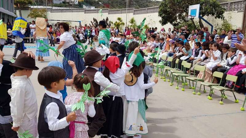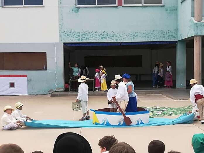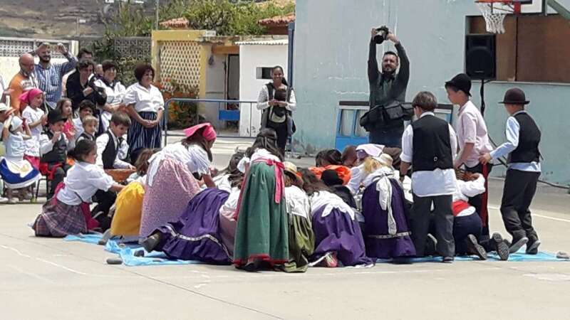 Una recreación que se desarrolló en el patio del colegio, con las familias y docentes como público, y que contó con todo lujo de detalles. Desde La Rama de Agaete al Charco de La Aldea, sin olvidarse de la Vará del Pescado y por su puesto tampoco de la Traída del Agua de Lomo Magullo.