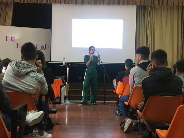 Ya por el mediodía, impartió un taller a alumnado de los IES Mesa y López, Felo Monzón y Tomás Morales. Tras contarles lo que le habría gustado que le “contaran cuando era joven”, la Psico Woman contestó a preguntas del más de medio centenar de asistentes, que se interesaron por términos como cis género, trans o queer, además de reclamar capacidad de escucha de las personas adultas.