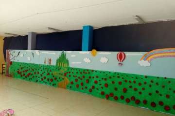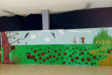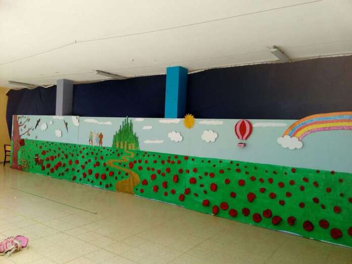 Alumnado y profesorado realizaron una interesante creación colectiva en la que los pequeños expresaron sus experiencias, sentimientos, emociones y aprendizajes adquiridos en el colegio a través de la historia del Mago de Oz, contextualizando el cuento en el barrio de Jinámar.