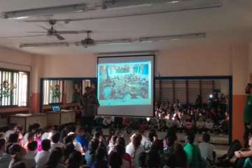El pasado jueves estuvo en el CEIP Poeta Fernando González y el viernes mantuvo un encuentro con escolares de los centros Plácido Fleitas y Saulo Torón.