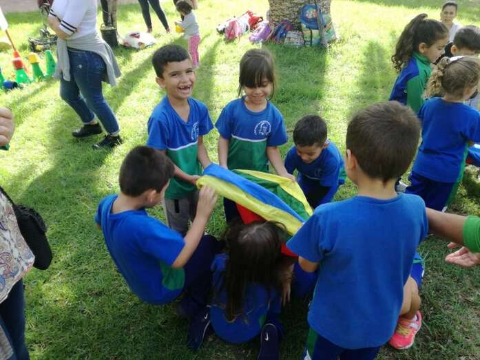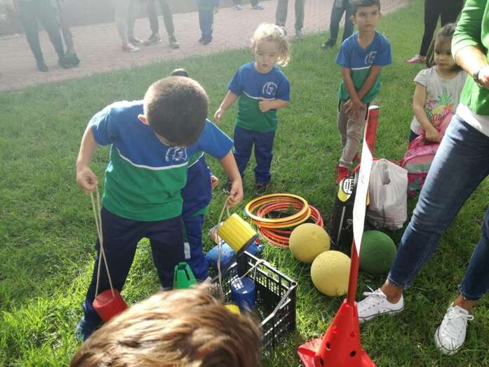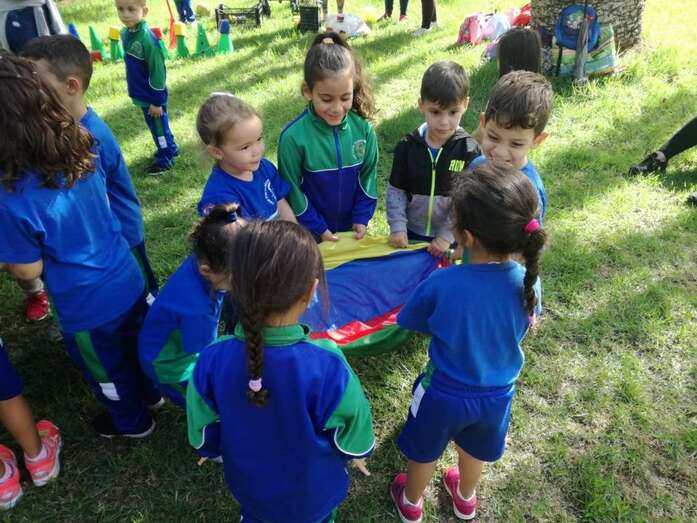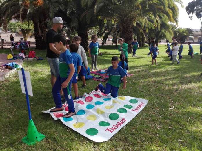 Los escolares de diferentes cursos disfrutaron de juegos como el pañuelito, la sillita con aros, el paracaídas, la carrera de sacos, el brilley, el twister y el de la cuchara, así como de bailes, música y del concurso La búsqueda del tesoro.