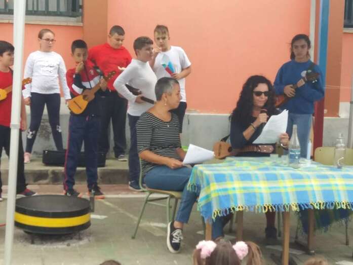 El postre lo pusieron algunos alumnos del colectivo haciendo una pequeña obra de teatro en la que todos cantaron canciones de este día. Esta actividad estuvo preparada por Carmen Aceytuno, docentea de Música, que lleva trabajando durante este mes con los alumnos.