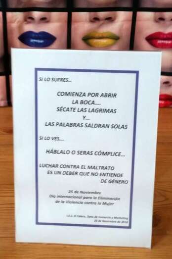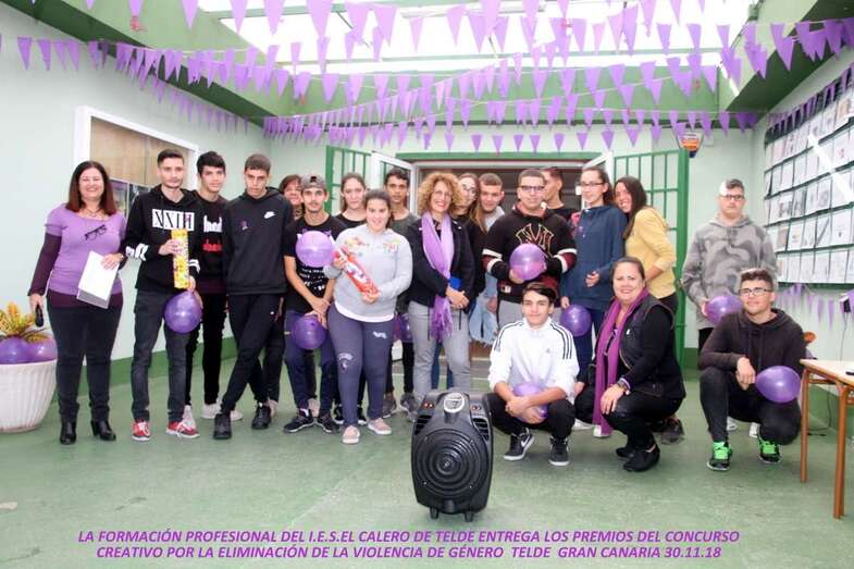 Con motivo del Día Internacional de la Eliminación de la Violencia contra la Mujer, la mañana del viernes 30 de noviembre, profesores y alumnos del I.E.S. El Calero de Telde, en el edificio de Formación Profesional, organizaron un emotivo y reivindicativo acto colectivo para manifestar y colaborar desde su centro docente por la eliminación de la violencia contra la mujer. Con esta temática convocaron el I Concurso Creativo de Ciclos del IES El Calero, ya que en este centro se imparten tres Ciclos de Grado Medio: Actividades Comerciales, Gestión Administrativa e Instalaciones Eléctricas y Automáticas, y dos Ciclos de Grado Superior: el de Administración y Finanzas y el Ciclo de Marketing y Publicidad, además de la Formación Profesional Básica de la rama de Comercio.
