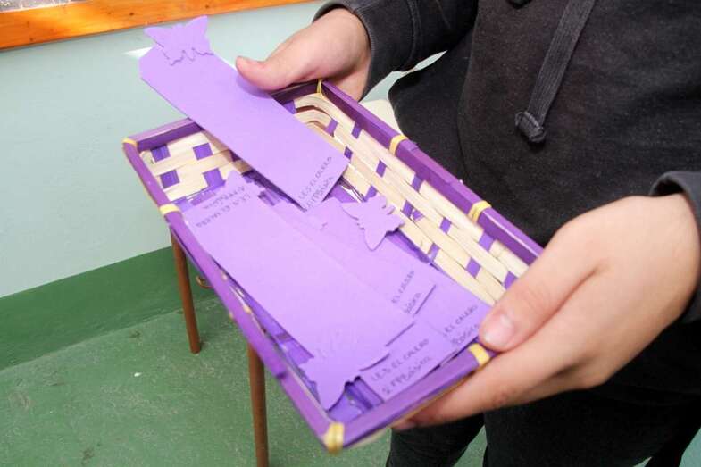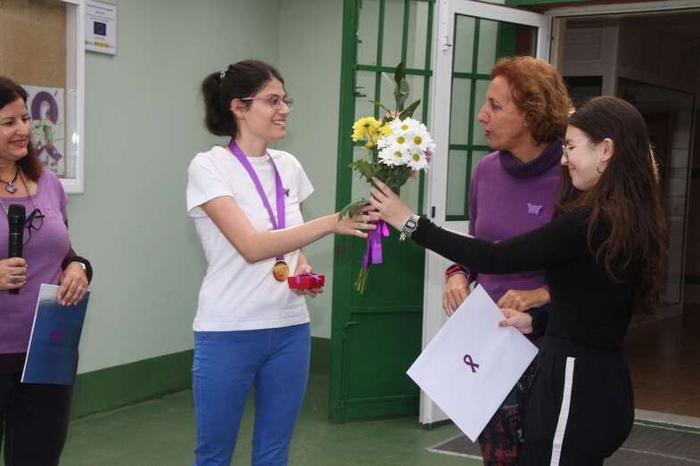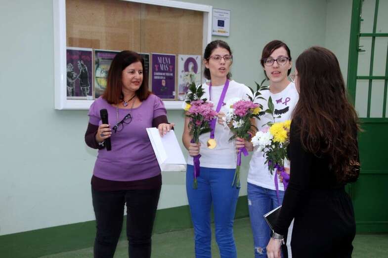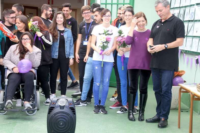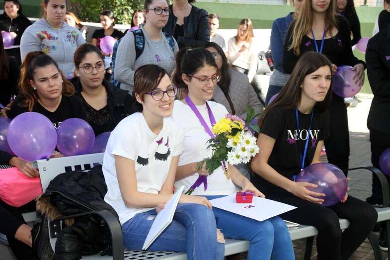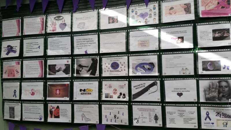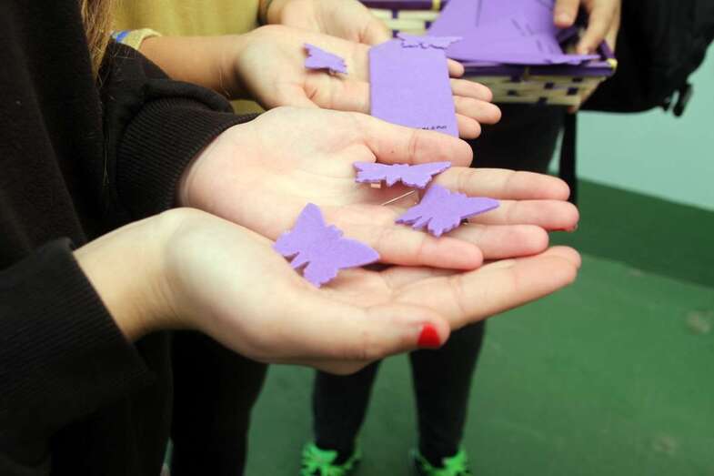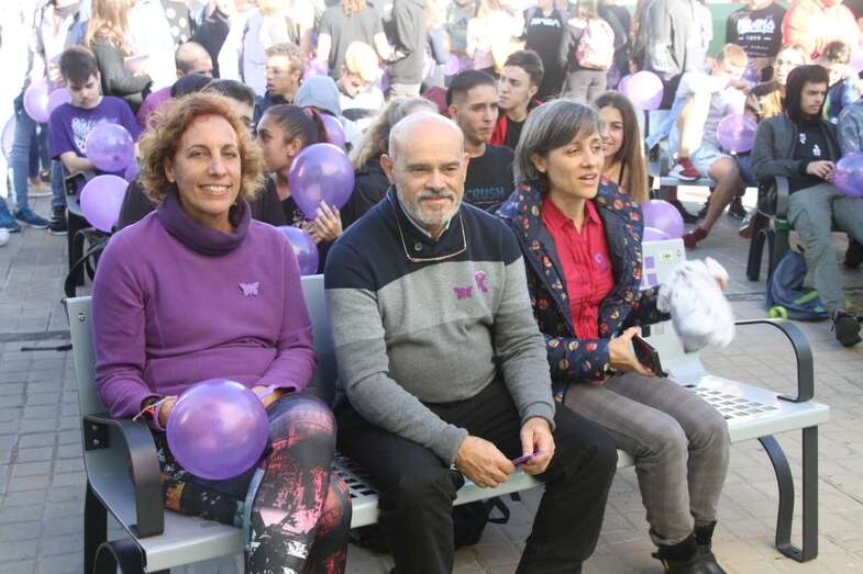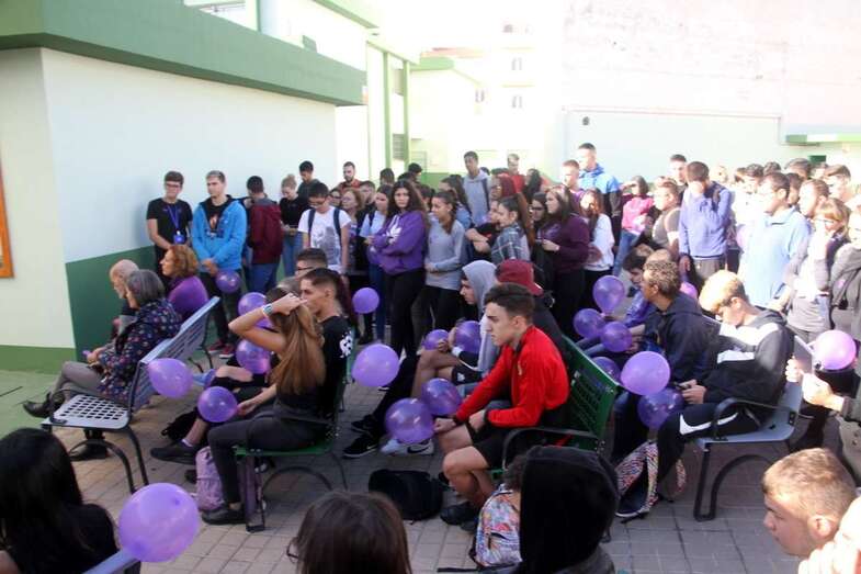 Después del lanzamiento de globos se reparten mariposas y estelas a modo de emblemas, confeccionadas por todos, como un recuerdo del acto y su conmemoración de este día dedicado a la lucha contra la violencia de género, el color morado que testimonia este acto en la importancia de un verdadero proyecto de una juventud que con su aportación desde el centro docente reivindican la atención y dedicaciones futuras en su lucha para la erradicación de la violencia de género. Ni una Más.