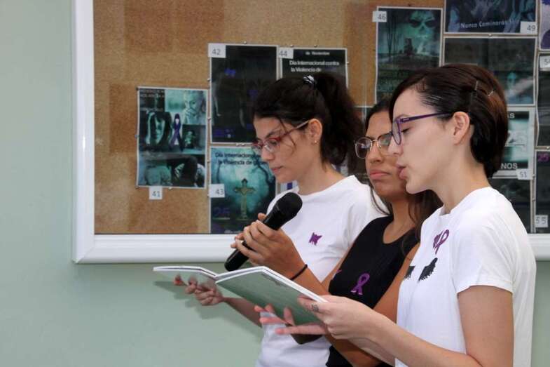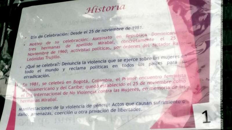Cathaysa y Desirée exponen en su lectura del manifiesto: “El Día Internacional para erradicar la Violencia de Género no es un día más. No debe pasar desapercibido porque este día es una representación de la lucha de la mujer para dejar de estar oprimida a causa de su género. Pero ¿Cuál es el motivo porqué se ha elegido concretamente esta fecha? Todos los 25 de noviembre desde 1981 en Latinoamérica y desde 1999, ya de forma internacional, se conmemoran unos hechos ocurridos en la República Dominicana en el año 1960...”.