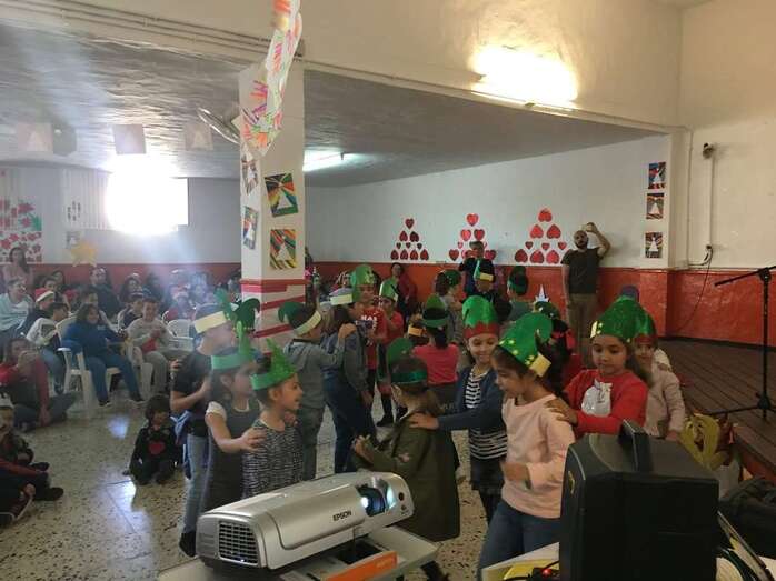 A continuación, se expusieron los trabajos artísticos creados por los alumnos y desarrollados con la ayuda de sus profesores, como Carmen Aceytuno, maestra de Música, y Bruni y Tonono, los monitores de Inglés del centro.