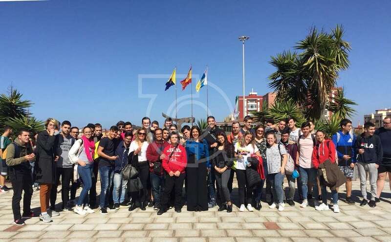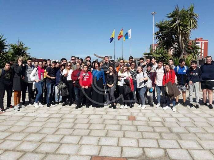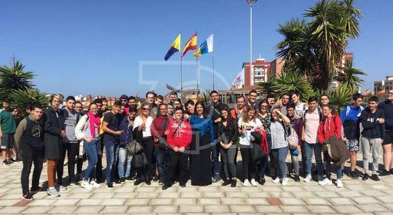 La alcaldesa Carmen Hernández con alumnos del IES Lomo la Herradura (Foto TA)