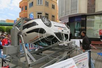 Telde.- Decenas de teldenses experimentaron esta mañana en la plaza de Los Llanos la sensación de padecer un vuelco del vehículo tras un siniestro ocurrido en una carretera o fuera de ella.