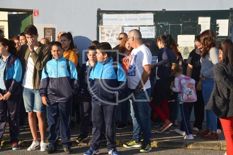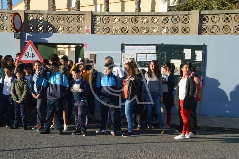 La concentración fue secundada por unas 80 personas que aprovecharon el momento de entrar a clase de los escolares para airear su protesta por el estado en que se encuentran algunas dependencias de las instalaciones escolares de Melenara. Lo hicieron con consignas y unas pocas pancartas exhibidas por niños.