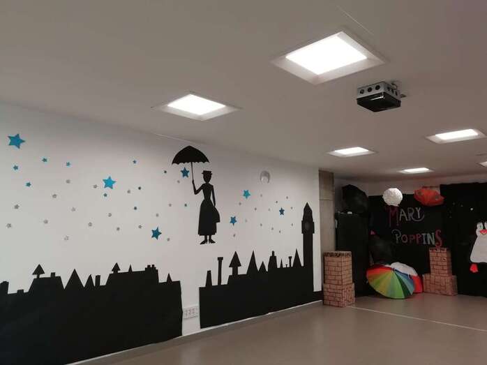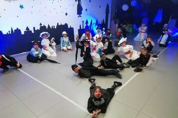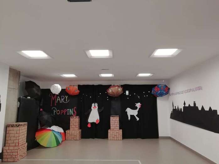 Los siguientes grupos en actuar fueron 1º y 2º, que disfrazados de Mary Poppins y de deshollinadores, y haciendo honor a su fantasía El Reino de la Mery, mostraron toda su gracia y desparpajo poniendo en escena un baile Supercalifragilisticoespialidoso.