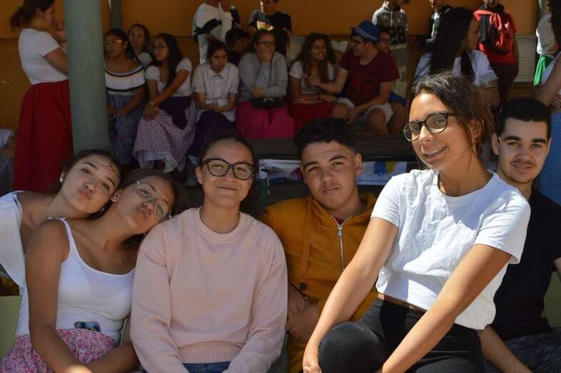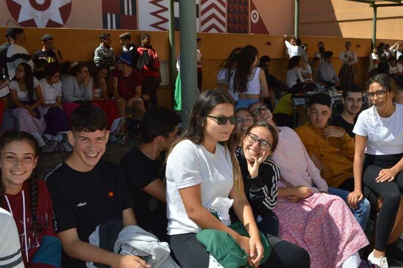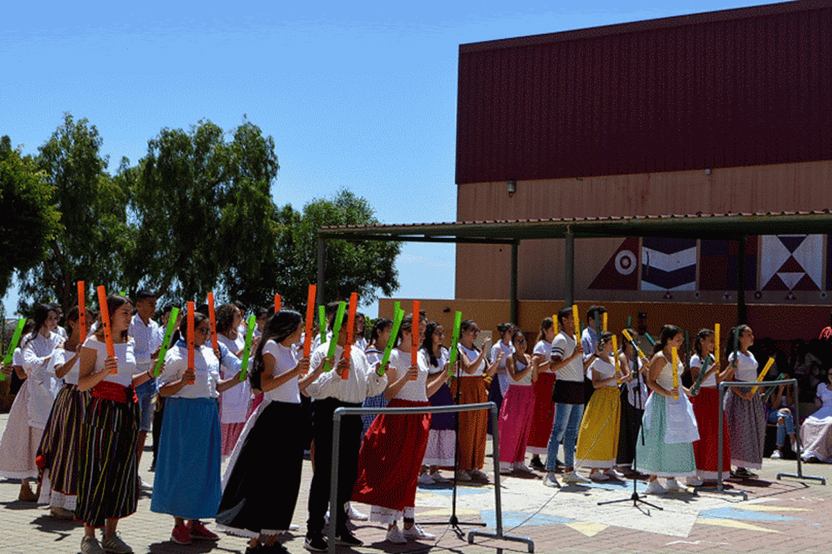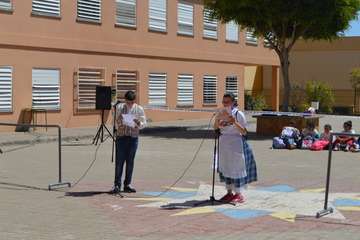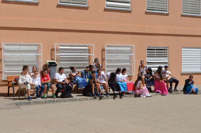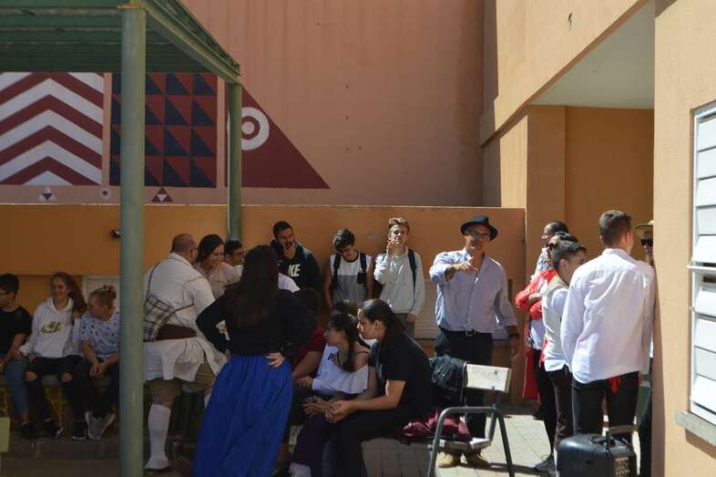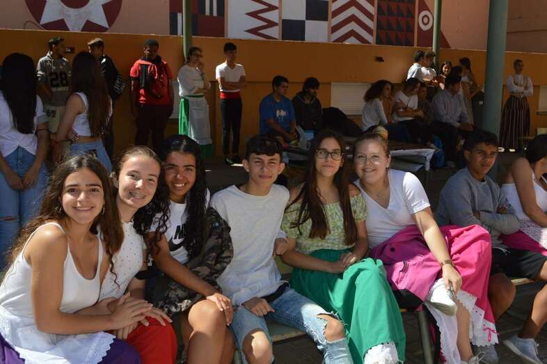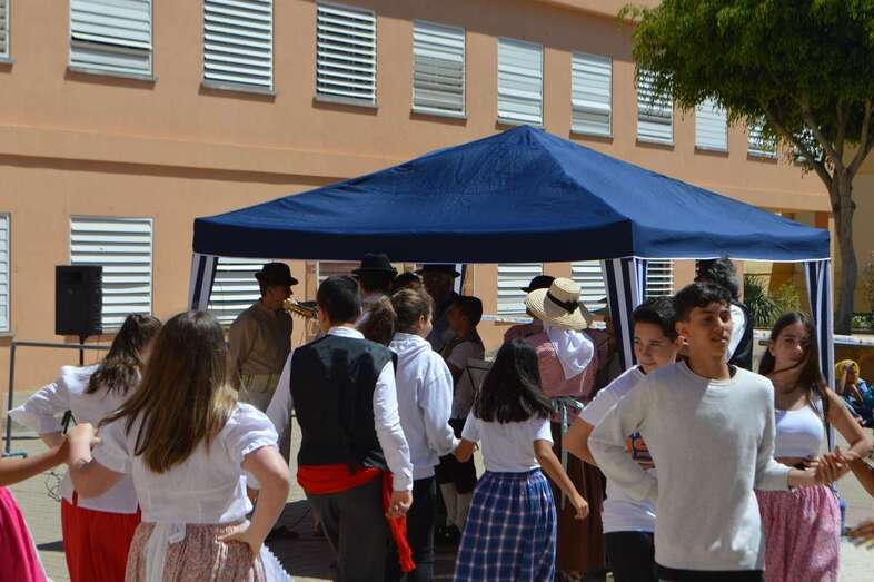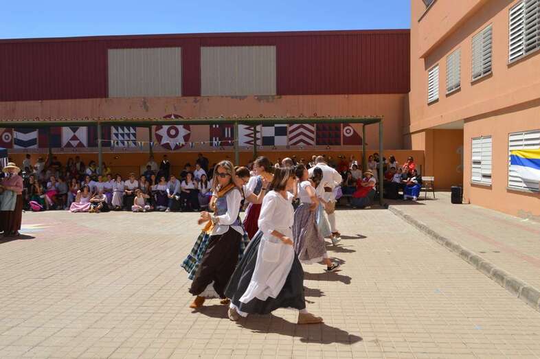 La poetisa teldense Mari Carmen Ramos Henríquez narró al alumnado de 1º y 2º de ESO la leyenda de Gara y Jonay y recitó poemas y canciones que cautivaron al alumnado., que también disfrutó de la compañía y la colaboración de la Agrupación Folclórica Tajea y Torna, que interpretó un repertorio de canciones canarias “con las que tanto el alumnado como el profesorado bailó y disfrutó de la fiesta de nuestra identidad”.