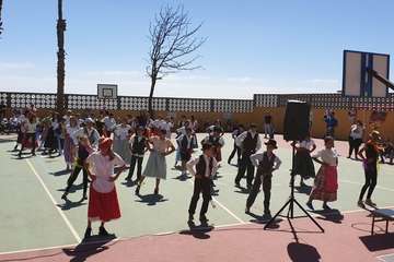 El alumnado de Infantil centró su actuación en Lanzarote, empezando con la saranda,  baile muy característico por la presencia de la zaranda con la que se danza, simulando cernir el trigo junto al resto de las herramientas de las faenas agrícolas. Los chinijos se movían al son de cestas, ceretas, acabando con canciones, poesías alusivas a la isla de Lanzarote.