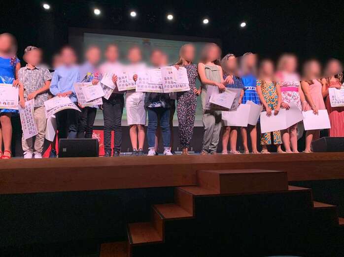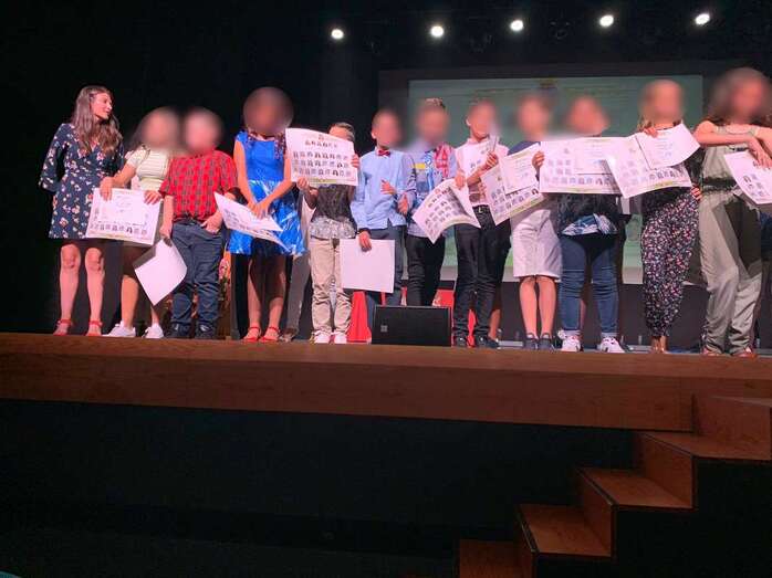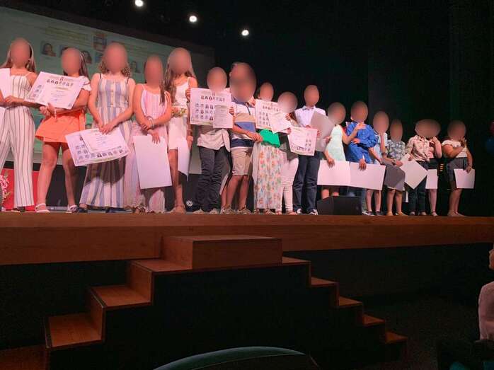 Esta celebración estuvo dirigida por los propios alumnos, que fueron presentando cada una de las partes en que se dividió la ceremonia escolar. Se comenzó recibiendo a las familias con alegría, realizando un baile coreografiado por el propio alumnado y que dio paso a un emotivo viaje en el tiempo por sus nueve años vividos en el centro a través de la proyección de un vídeo.