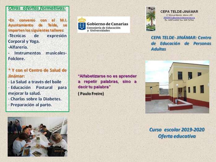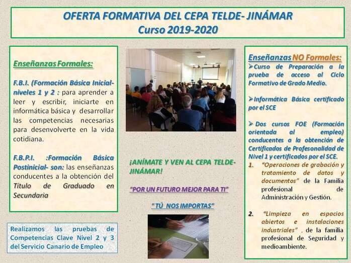 Telde.- El Centro de Educación de Personas Adultas de Jinámar (CEPA Telde-Jinámar) anuncia que mantiene abierta la matrícula para la oferta formativa de cara al nuevo curso académico 2019-2020.