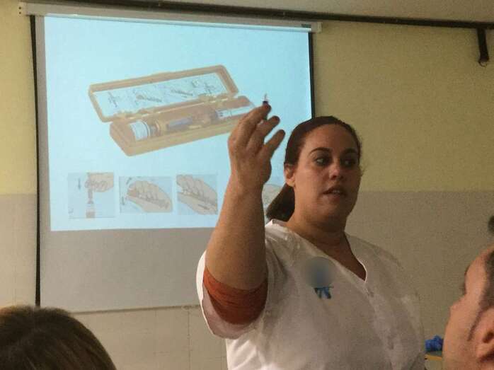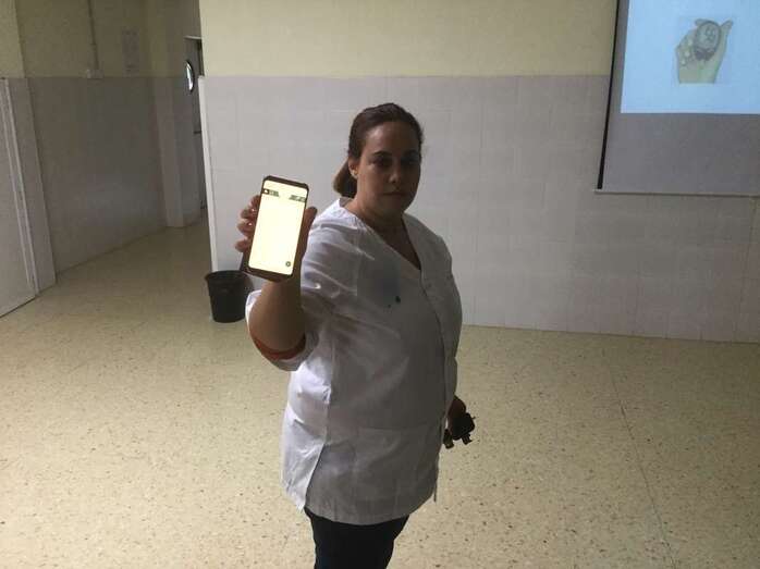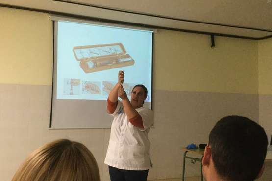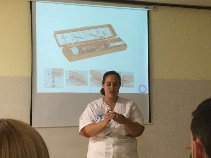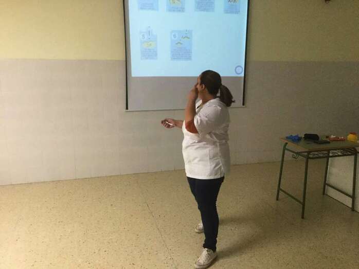 Cristina Blanco, auxiliar de enfermería del instituto y Carolina Marrero profesora del departamento de Música, fueron las personas encargadas de instruir y concienciar a los docentes.