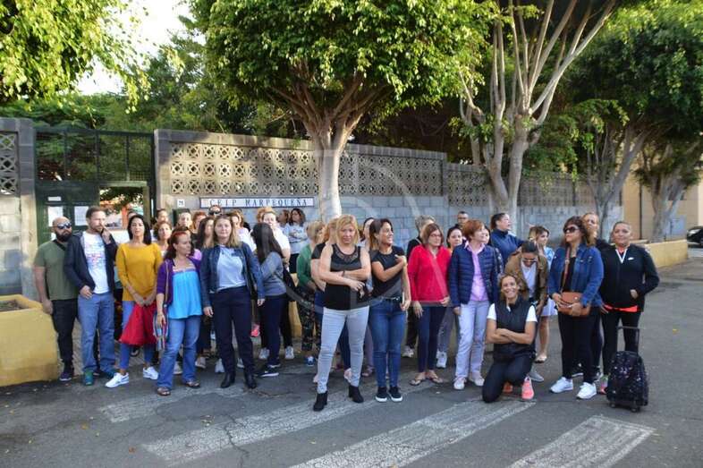 Telde.- Un grupo de unos 35 o 40 padres y madres se concentró este viernes a primera hora de la mañana a las puertas del CEIP Marpequeña para protestar por las condiciones de este colegio público en el que estudian sus hijos y reivindicar al Ayuntamiento de Telde que tome cartas en el asunto.