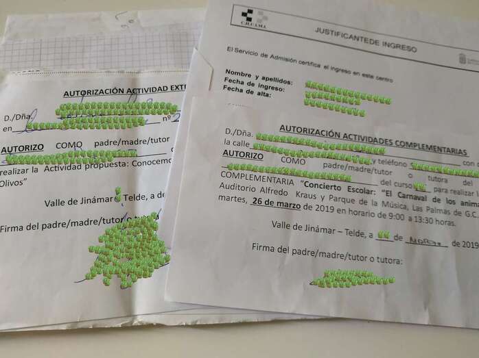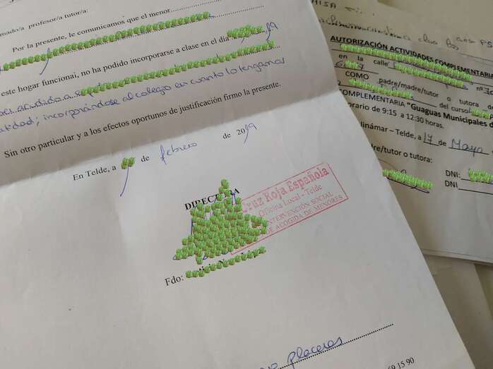 Entre la documentación hallada se encontraban desde cuadrantes, fichas de seguimiento con notas y observaciones de los alumnos o un análisis económico con los gastos e ingresos del centro a otros papeles con datos mucho más sensibles como son informes clínicos y recetas o justificantes de ausencias y autorizaciones para actividades extraescolares en las que constaban nombres completos, direcciones, DNI, teléfonos y firmas. Hasta un billete de barco. Para más inri, aseguran fuentes conocedoras del caso, también se encontraron datos de un menor en situación de especial vulnerabilidad.