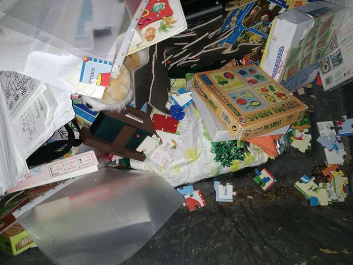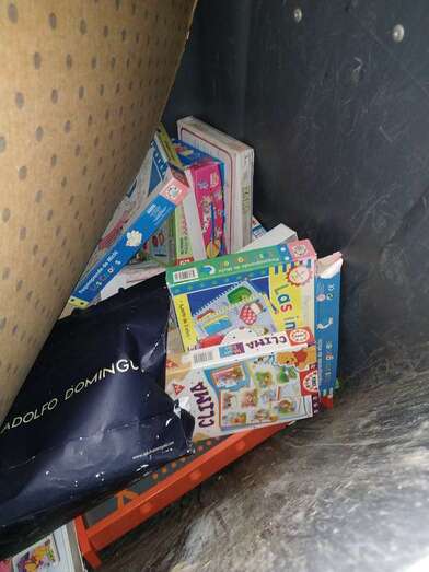 "Nos quedamos perplejos ante el hecho de que el colegio decidiera tirar esos enseres en lugar de repartirlos a las familias, principalmente teniendo en cuenta la cantidad de niños necesitados en la zona y que se aproximan las fiestas navideñas", señala indignada una de las personas que descubrió la documentación y que luego intentó recuperar parte de los peluches, puzzles, muñecos y libros para limpiarlos y donarlos.