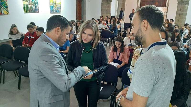 En el acto celebrado en la ermita de San Pedro Mártir estuvieron presentes el alcalde Héctor Suárez, el concejal de Educación, Juan Francisco Artiles, el concejal de Medioambiente, Álvaro Monzón, la directora del IES Juan Pulido Castro, Rosalía Santana y la coordinadora del proyecto Erasmus, Maja Macek.
