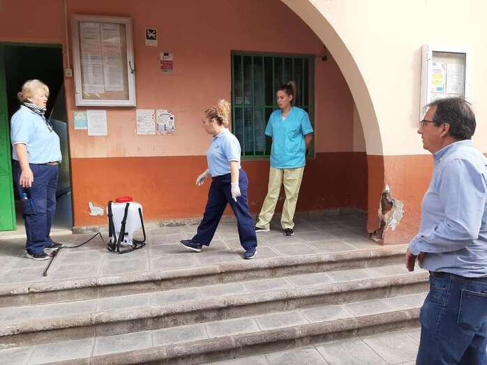 Para ello se ha realizado la desinfección con productos especiales, garantizando el óptimo estado de las zonas comunes y accesos a los colegios.