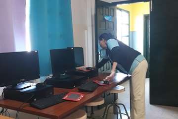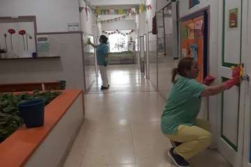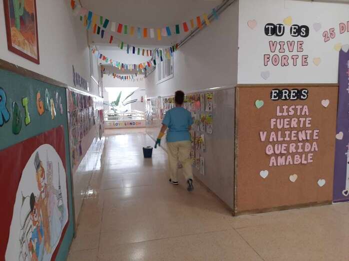La falta de actividad lectiva ha permitido que las labores sean más minuciosas que lo habitual, facilitando una mayor limpieza de todos los enseres, el mobiliario y elementos arquitectónicos, con especial incidencia en las áreas más sensibles de los centros.