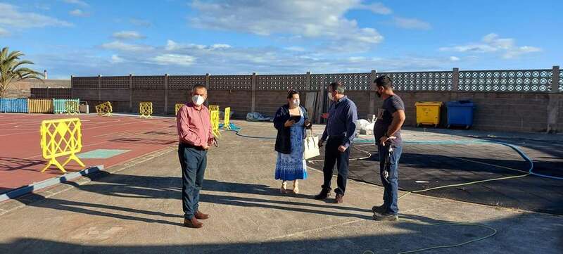 El concejal, acompañado de la arquitecta municipal, María Jesús Santana; así como del responsable técnico de la obra, Aridane Rodríguez; del edil, Álvaro Monzón; y otros trabajadores municipales implicados en la ejecución de los trabajos, explicó que se trata de uno de los proyectos incluidos en el Plan de Mejora de los colegios públicos de primaria y secundaria de la ciudad para 2020 y 2021.