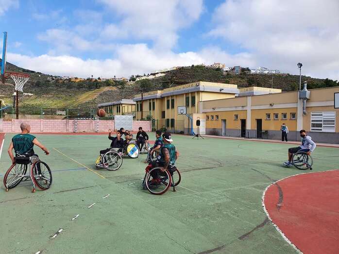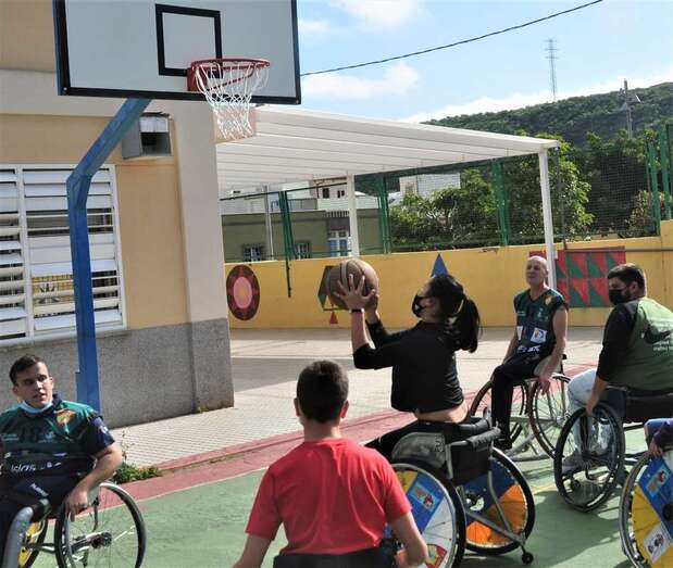 Y no solo eso. La charla y posterior práctica con el alumnado, que se puso por un día en la piel de los integrantes de este club cuya sede está en Vecindario, «sirvió de motivación para que sean conscientes de que juegan un papel fundamental en la creación de un mundo mejor para la integración de colectivos que podrían estar en riesgo de exclusión», añade Ramírez, que recuerda que la silla de ruedas, lejos de ser un elemento exclusión, ofrece desde el deporte grandes posibilidades de realización personal y colectiva con actividades tan variadas, además del baloncesto, como el ciclismo, rugby o tenis.
