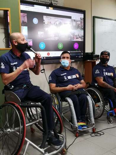 Durante la segunda hora de la jornada escolar, explican desde el centro, todo el alumnado del centro se conectó por vídeoconferencia a una charla a cargo de jugadores de baloncesto en silla de ruedas, cumpliendo así uno de los objetivos del proyecto que consiste en dar a conocer al alumnado el trabajo de distintas instituciones que realizan diversas acciones de inclusión social.