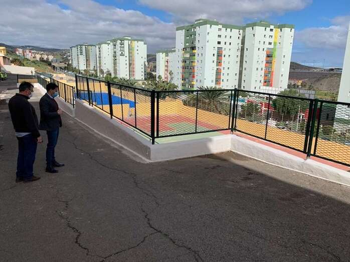 En la visita, ambos ediles recorrieron las instalaciones para conocer en detalle las mejoras ejecutadas. Entre ellas –indica el Gobierno de Telde en una nota de prensa– destaca la renovación de dos aseos, que se han habilitado para el profesorado y para el aula en clave, la reposición de la cubierta de la zona de acceso al edificio de Infantil y el cerramiento de las zonas de canchas. Para ello, la Concejalía ha contado con un presupuesto total de 42.644 euros aportados por la Institución local.