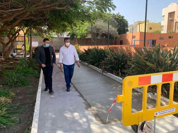 Según explicó Juan Francisco Artiles, “concretamente, en este centro se ha sustituido una puerta lateral de entrada al colegio por la que acceden los vehículos de servicio y los de emergencia porque se encontraba en muy malas condiciones, con riesgo de caída y desprendimiento de muros. La nueva puerta, que cuenta con entrada peatonal, aporta una mayor seguridad para los menores y profesorado ya que actualmente forma parte del plan anticovid del centro. Además, se está nivelando el pasillo principal con un refilado de mortero con el que se pretende crear la pendiente óptima para evitar que se acumule agua de lluvia y así evitar caídas”.