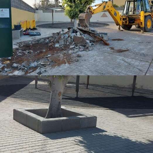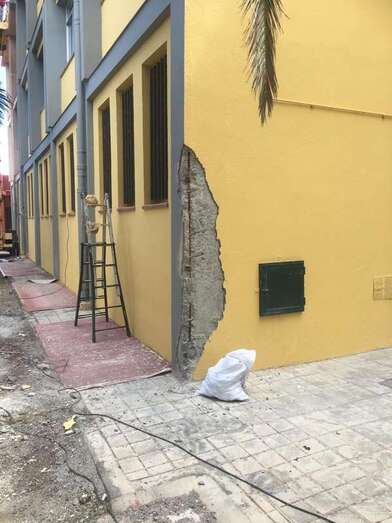 La intervención en marcha ha consistido en la reparación integral de la fachada del edificio de Primaria, cuya estructura de hormigón se hallaba en mal estado y de la que caían cascotes, así como el arreglo en el patio del RAM de Infantil, con un pavimento de losetas hidráulicas que presentaba severos desperfectos.