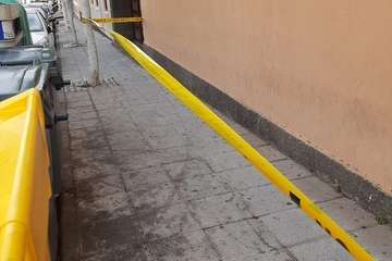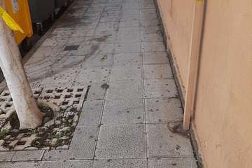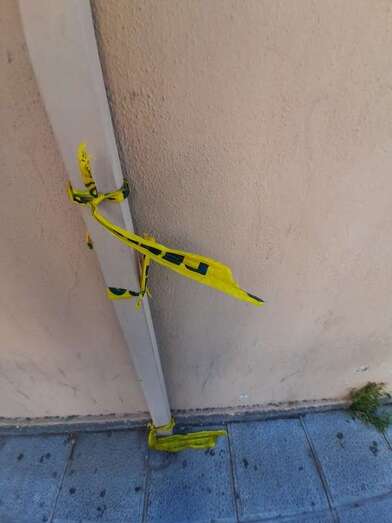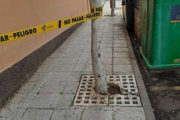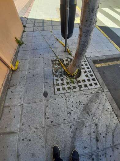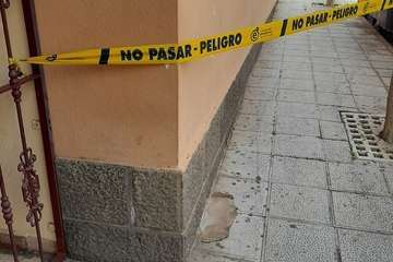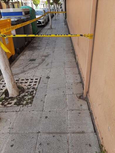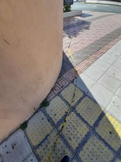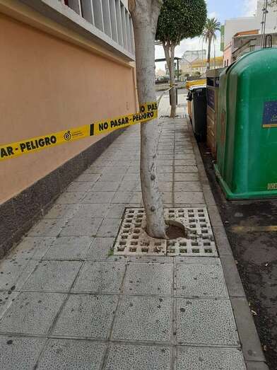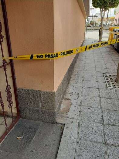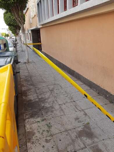 El espacio de la acera que está debajo de estos altorrelieves está señalizado con cintas, pero Florido apuntó a TELDEACTUALIDAD que es una medida insuficiente para evitar posibles daños personales.