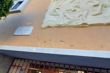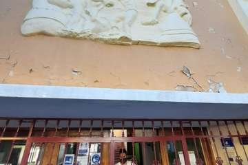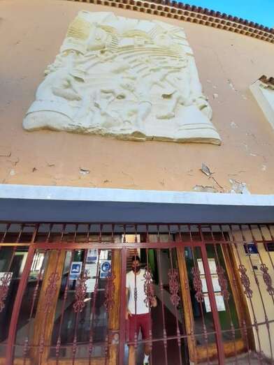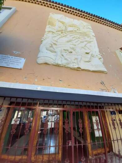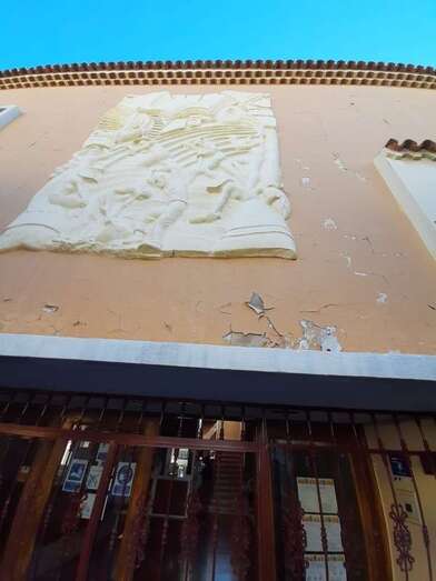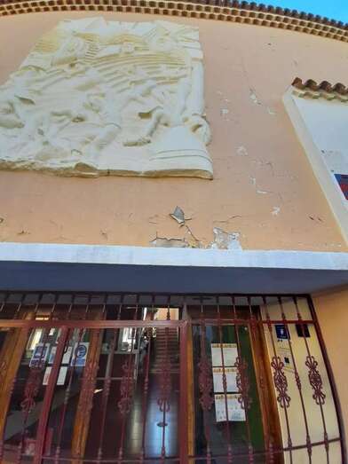 La voz de alarma la ha dado el representante del Ayuntamiento de Telde en el Consejo Escolar de este centro, José Luis Florido Calero, quien sostiene que la pieza de mayor tamaño de estas obras alegóricas a las herramientas y oficios artesanales, que justo encima de la puerta principal, está en mal estado y rajada y en cualquier momento puede desprenderse y desplomarse sobre la acera izquierda de esta vía.