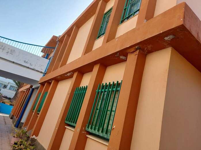Juan Francsico Artiles detalla que en este centro se procederá a arreglar y pintar la fachada principal, que presentaba riesgo de caída de cascotes, así como el arreglo e impermeabilización de varias zonas de la cubierta del edificio, entre otras tareas.