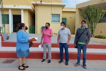 El edil del área, Juan Francisco Artiles, visitó el centro junto a la arquitecta municipal, María Jesús Santana, el técnico responsable del proyecto y la dirección de la obra, Flavio Rodríguez, y el representante de la empresa adjudicataria, aprovechando la firma del acta de replanteo, para conocer sobre el terreno los detalles de la actuación prevista.