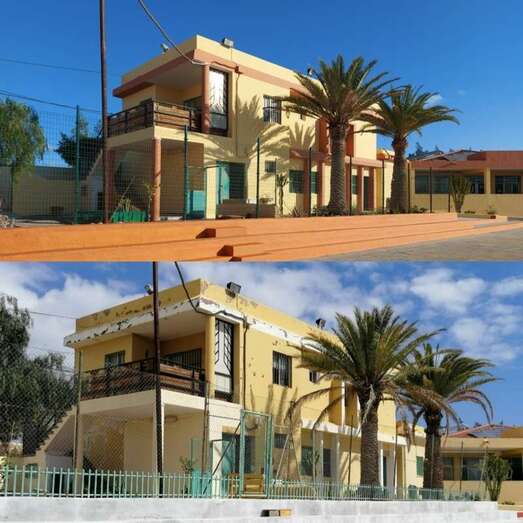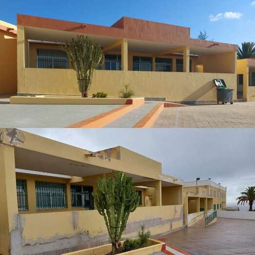 Los trabajos, que contaron con un presupuesto de ejecución de 41.786,71 euros, se centraron en adecentar de fachada del edificio administrativo y del anexo de infantil, arreglar el pavimento en la zona de acceso al centro y construir una rampa para mejorar la accesibilidad en la cancha deportiva, sustituir vallado y reponer techo en el lucernario del edificio anexo, entre otras laboras. Asimismo, el tiempo de ejecución se ha desarrollado en el tiempo establecido de dos meses.