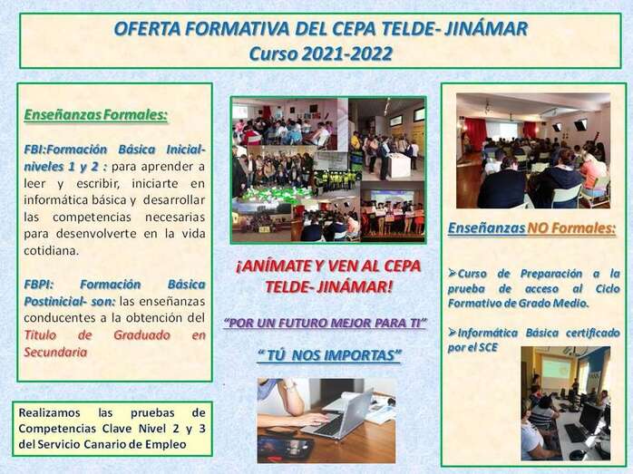 El Centro de Educación de Personas Adultas (CEPA) de Jinámar invita a la población de su zona de influencia a conocer la oferta formativa para este curso 2021-2022.