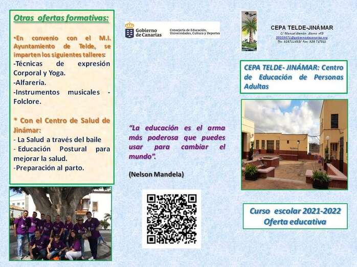 El CEPA Telde-Jinámar ofrece una enseñanza pública y gratuita, dentro de la Red de Centros de Adultos de la Consejería de Educación, Universidades, Cultura y Deportes del Gobierno de Canarias. La formación se adapta a las necesidades del alumnado.