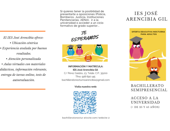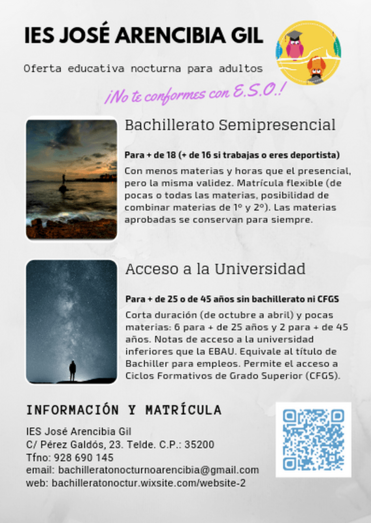 El IES José Arencibia Gil de Telde abre este miércoles, día 6 de octubre, la matrícula para el curso de preparación para la prueba de Acceso a la Universidad para adultos mayores de 25  y de 45 años de edad.