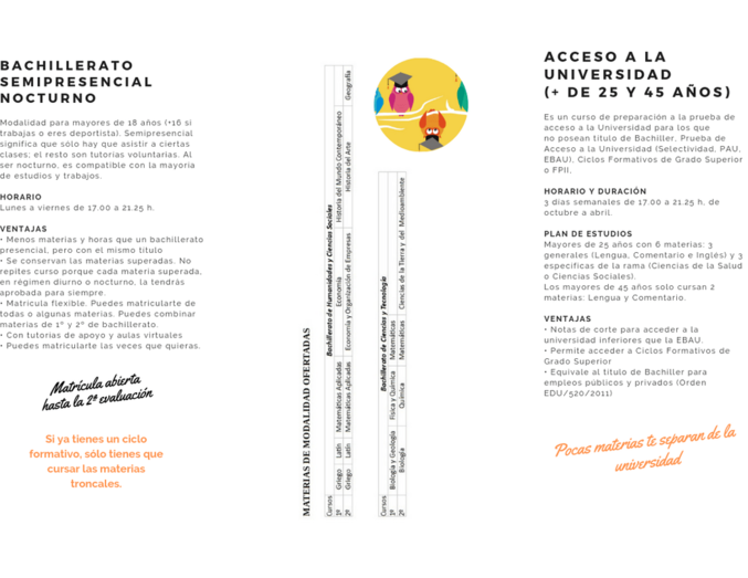 Se imparte tres días a la semana en horario de 17.00 a 21.25 horas, de octubre a abril.