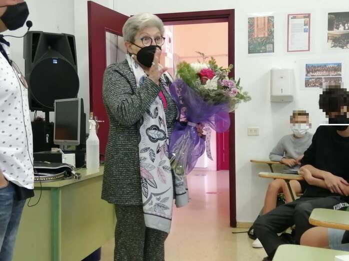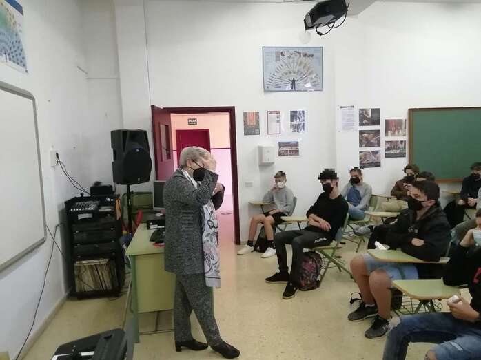 Isabel Torón Macario, hija del poeta teldense Saulo Torón, participó esta semana como conferenciante en las jornadas conmemorativas del Día de la Mujer organizadas por el IES José Arencibia Gil en el marco de su programa de actividades Hablen con ella.