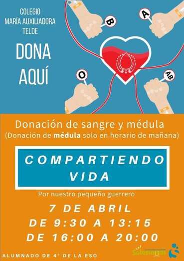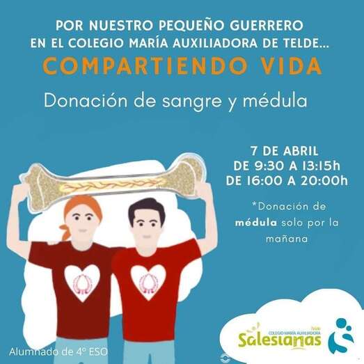 El colegio María Auxiliadora de Telde llevará a cabo este jueves, día 7 de abril, una campaña de donación de sangre y médula en colaboración con el Instituto Canario de Hemodonación y Hemoterapia.