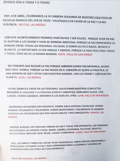 Las escuelas rurales de Telde y Valsequillo corren por la paz