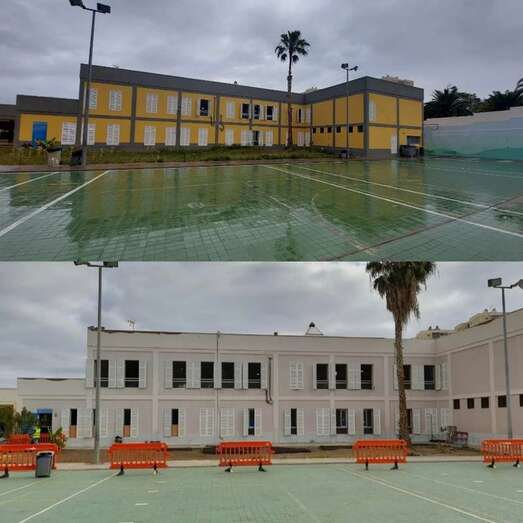 En concreto, en este centro se reparó la fachada de los edificios de Infantil y de Primaria debido a desprendimientos y caída de cascotes, se realizó un refuerzo de correas y pretiles, y se impermeabilizó toda la cubierta del edificio principal.