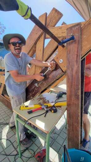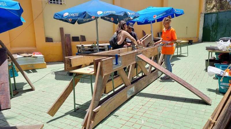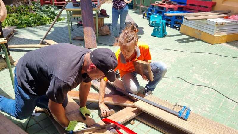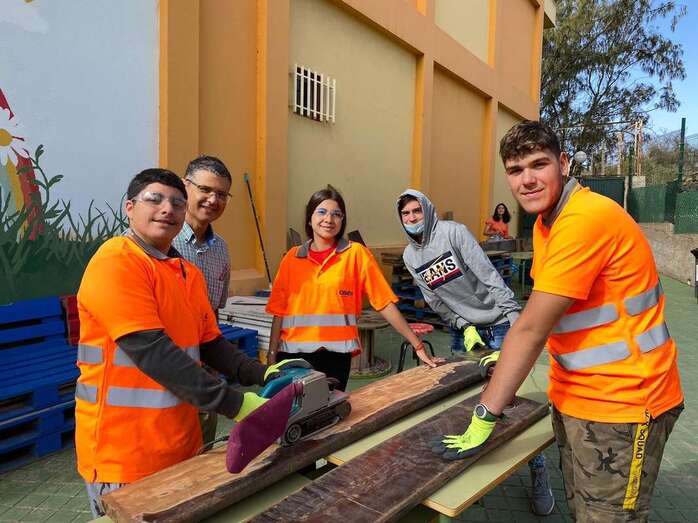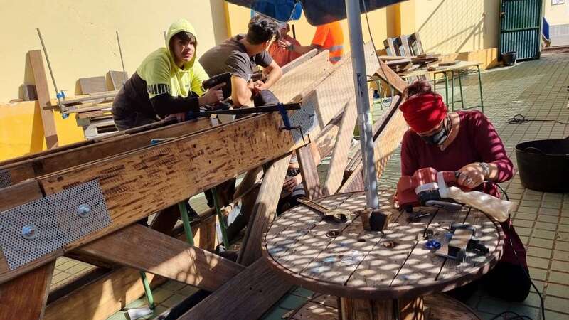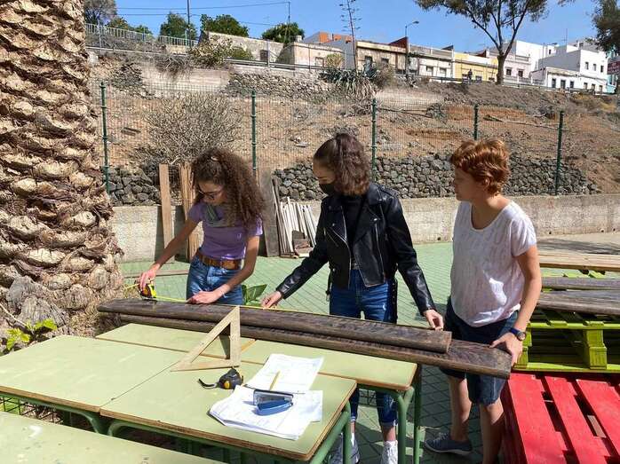 Por estos talleres de prefabricación pasaron aproximadamente 120 estudiantes de diferentes niveles educativos (desde 1º ESO hasta 1ª de Bachillerato). Aprendieron a leer un plano, a medir los tablones de madera, a cortar con una cierra circular, a lijar, a montar la estructura de los módulos de las cercha, a usar un taladro, a atornillar y muchas más actividades, apuntan desde el centro.