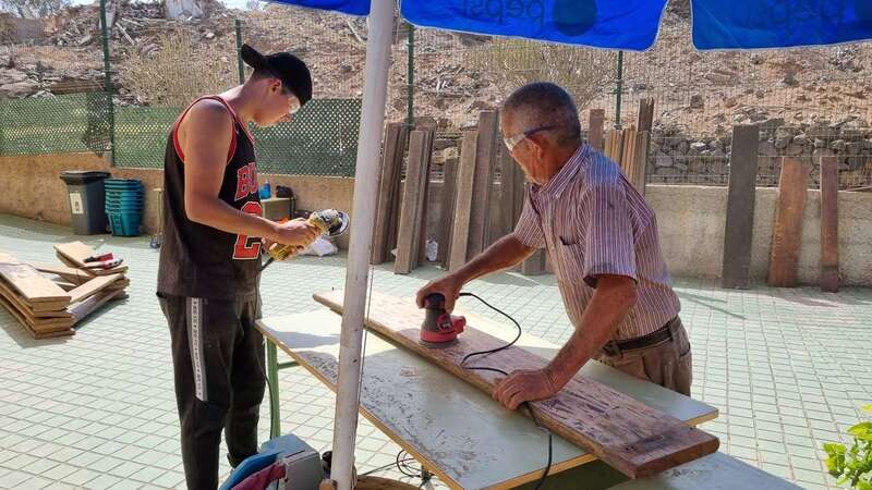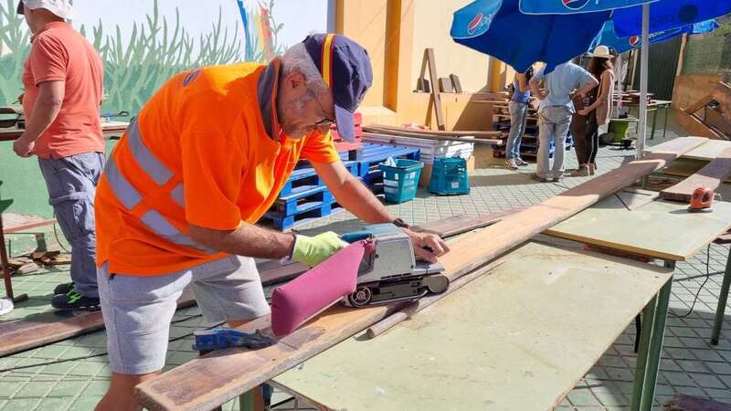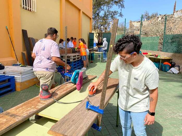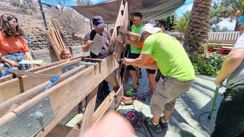 Durante las tardes, en horario de 16.00 a 18.30 horas, se seguía con el trabajo de prefabricación. "A estas jornadas fuera del horario lectivo se unieron, cada tarde, padres, madres, alumnado, profesorado del centro, profesorado del IES Fernando Sagaseta e incluso hasta algún abuelo pasó por allí a colaborar en este proyecto comunitario donde la acción participativa es la base y objetivo primordial", detallan.