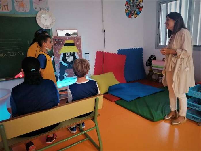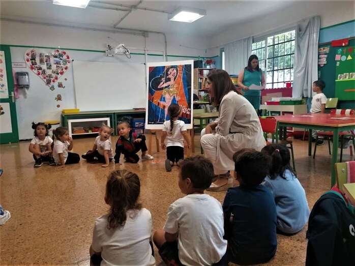 La primera regidora, acompañada por la directora del centro escolar, Goretti Betancor, recorrió algunas de las aulas de Infantil y Primaria, además del Aula en Clave, para escuchar de los pequeños artistas la explicación de cómo realizaron los cuadros y la historia de cada una de estas mujeres.