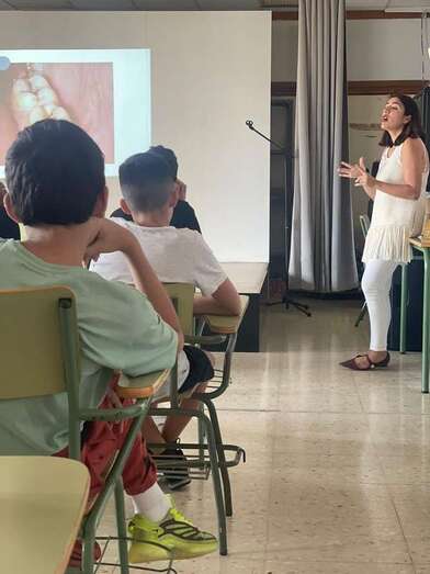 La odontóloga, titular de la Clínica Dental Rocío Juncal (San Juan), anunció que ofrece a los alumnos y a sus familias, así como al personal del citado IES, un descuento del 10% y revisiones gratuitas.